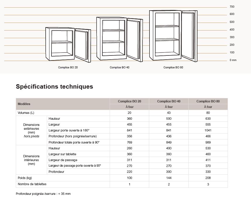 Disponibles en trois modèles à fixer, les coffres-forts Complice BO ont été conçus pour apporter une solution élégante et conviviale à vos besoins de sécurité personnelle ou professionnelle.